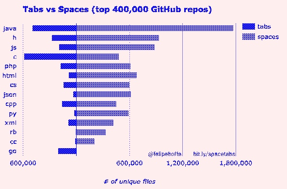 400,000 GitHub repositories, 1 billion files, 14 terabytes of code: Spaces or Tabs?