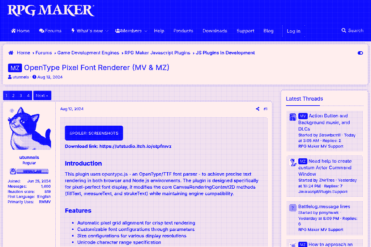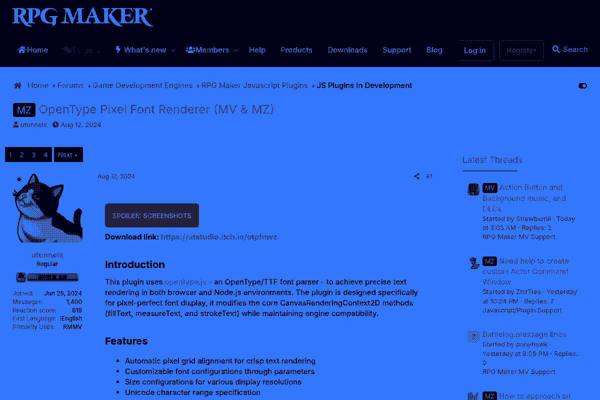 Opentype Pixel Font Renderer for MV/MZ by utunnels