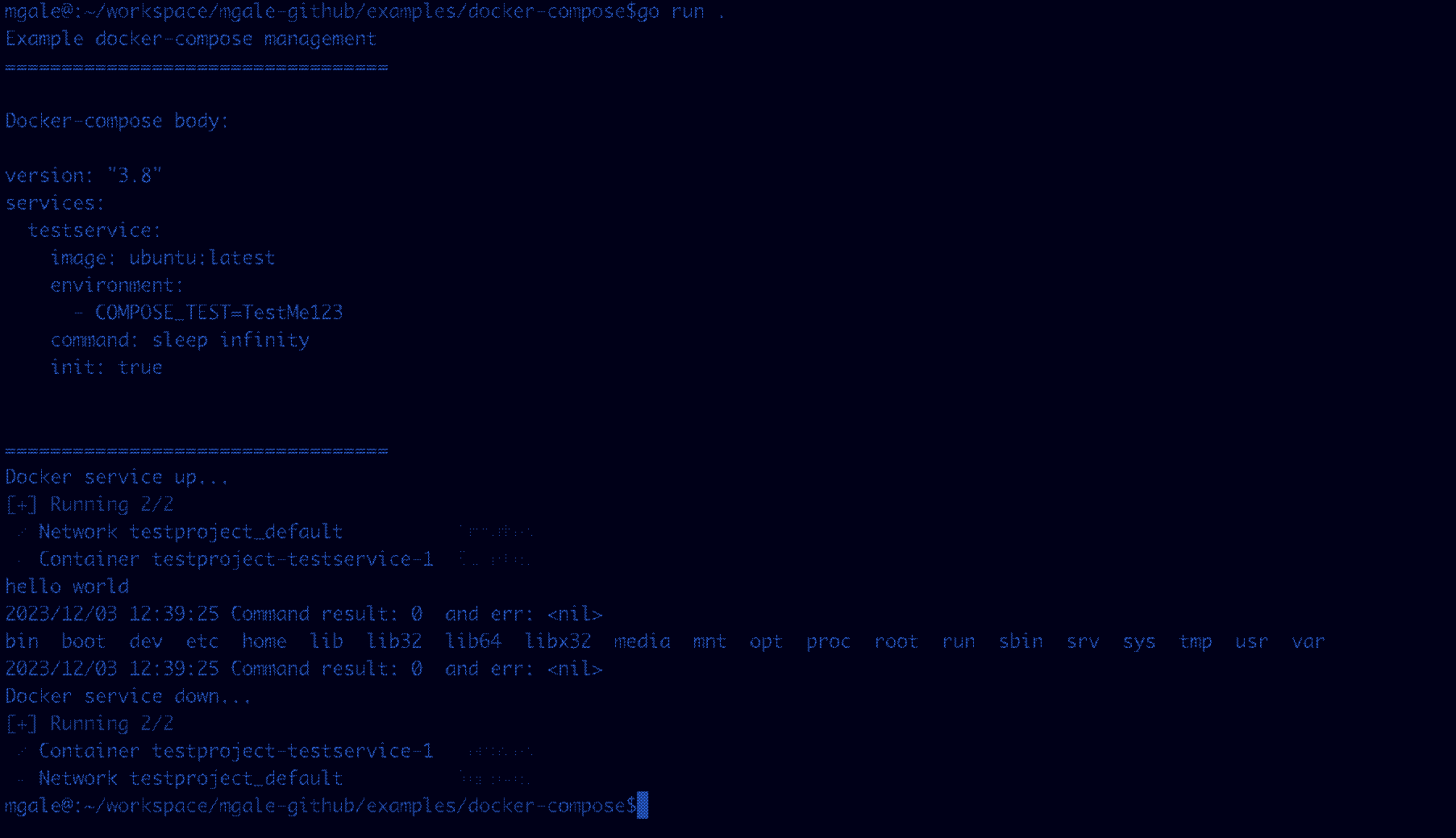 Examples of scripting docker compose using the 1st party go libraries.