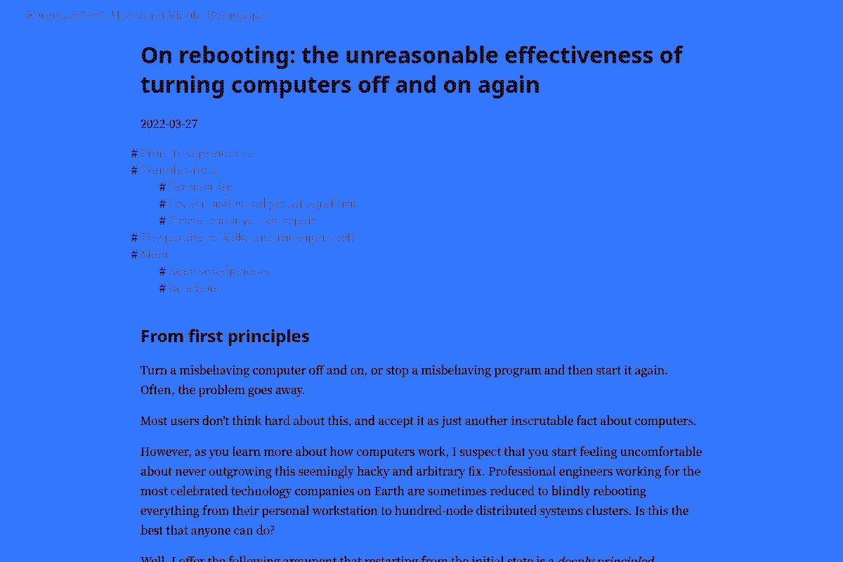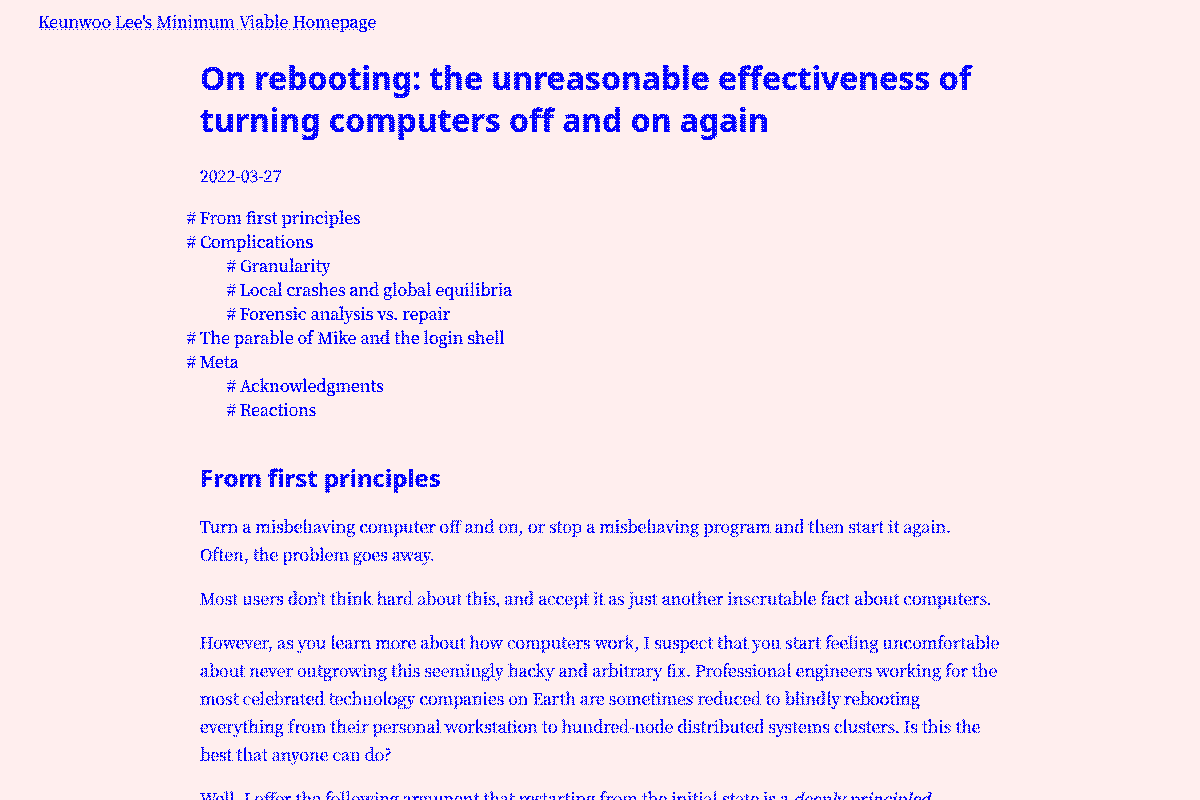 On rebooting: the unreasonable effectiveness of turning computers off and on again - Keunwoo Lee's Minimum Viable Homepage