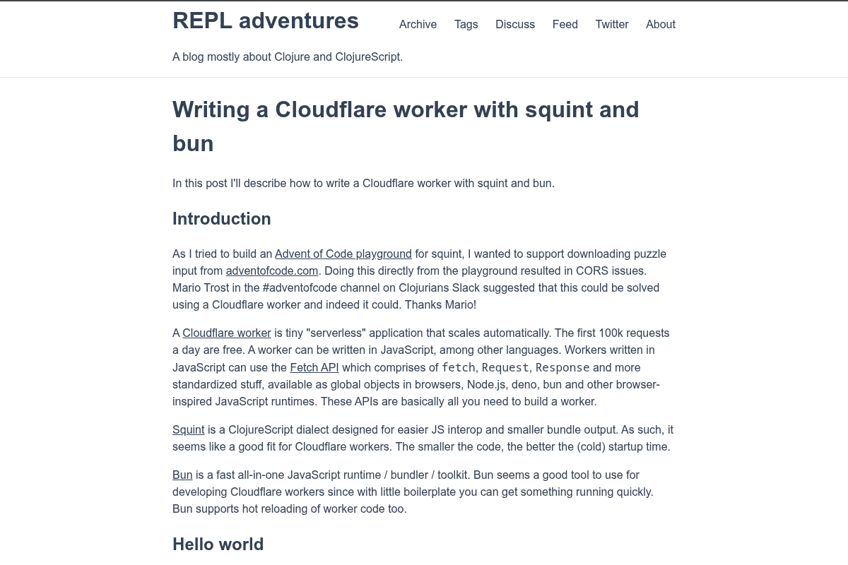 Writing a Cloudflare worker with squint and bun